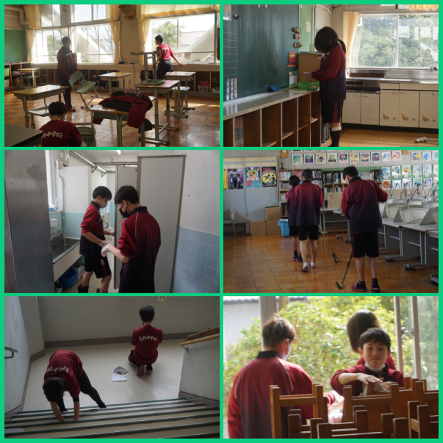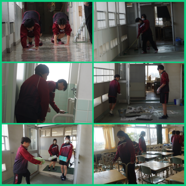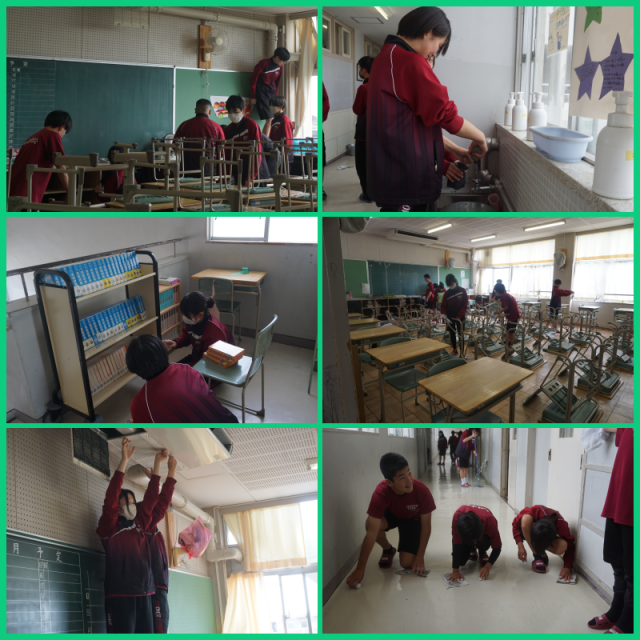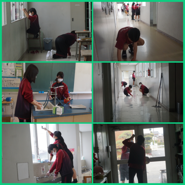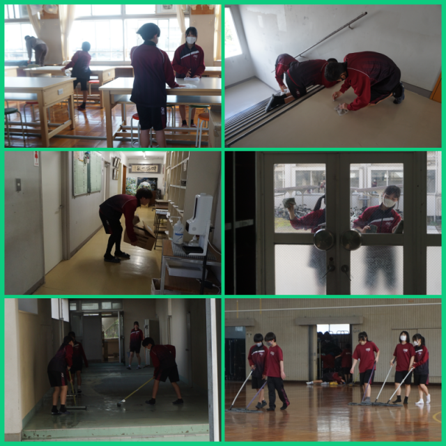 全生徒が、日頃はできない箇所まで丁寧に清掃に取り組んでくれました。また、美化委員会の生徒が教室のワックスがけを行ってくれました。