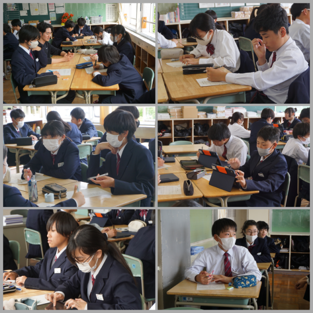 その後1年生はより詳しい説明を聴き、2,3年生は教室に戻り早速ワークシートに自分の取組について考えました。