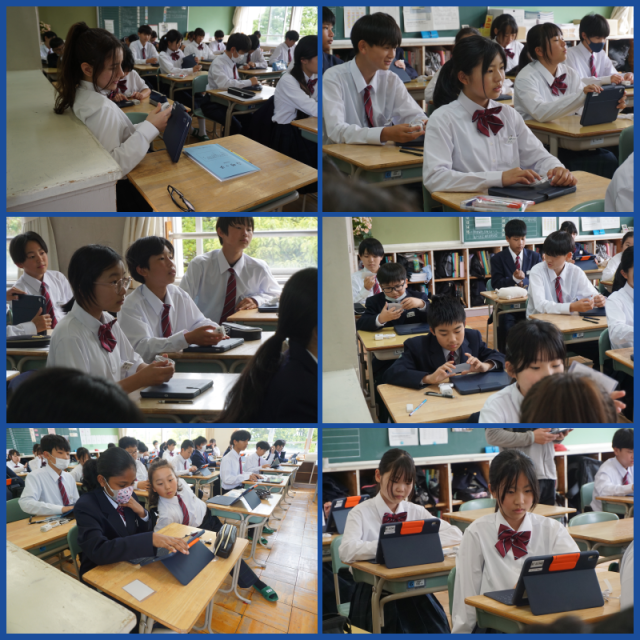 タブレット端末の配布と設定を行いました。小学校でも使用していたと思います。貸し出されているものなので、ルールを守り、大切に使いましょう。