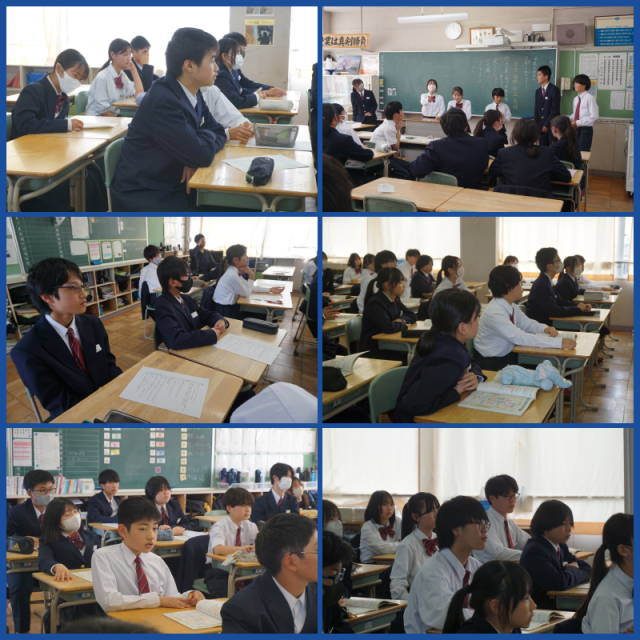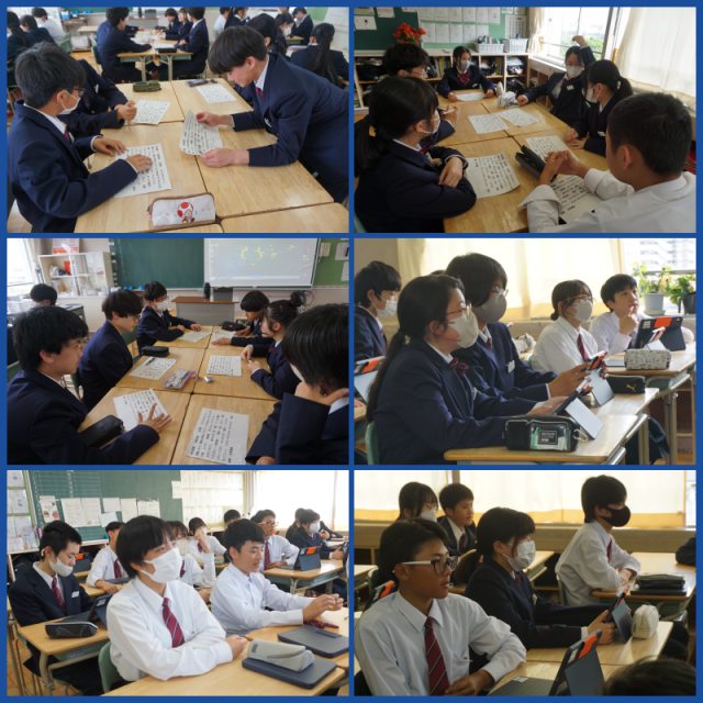学級目標決めや進路学習を行っていました。アイデアをたくさん出し、自分たちのらしさが出る素敵な学級目標が決まるといいですね。