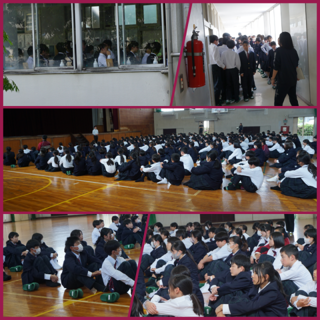 グラウンドの状況が良くないため、縮小して行いました。震災は、いつどこで起こるのかわからないので、日頃から一人ひとりが防災意識を持って、行動を起こせるようにしておけると良いですね。