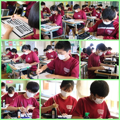 2年生 国語 公開日 2021/09/15 更新日 2021/09/15 学年ギャラリー 書写競技会に向けて、練習に取り組んでいます。 筆の流れを止めないように気をつけながら集中して練習 していました! いいね(0)