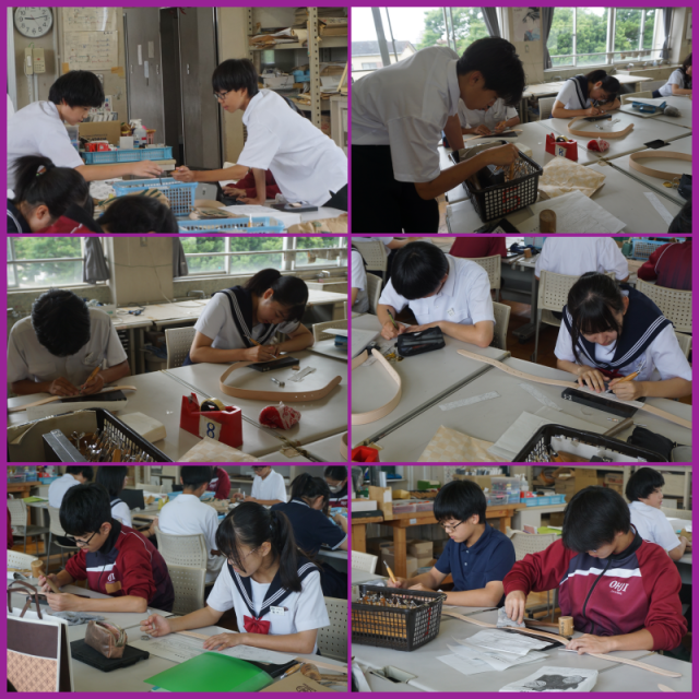 ベルトに模様を打ち込み始めました。やり直しがきかず、細かい作業が多いので、みんな集中して取り組んでいました。