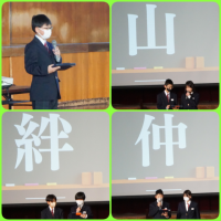 2学期末に行う予定だった集会を行いました。級長が各クラスの2025年を表す漢字や...