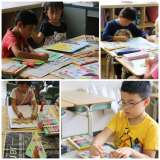 不規則な形の紙を、いろいろな向きにしてながめると、どんなものが思い浮かぶでしょう?思い浮かんだイメージを絵にしました。その後は画用紙に背景を描いてあわせます。おもしろい作品がいっぱいです。