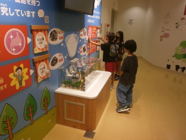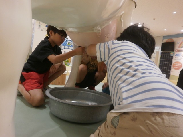 工場では、牛乳や乳製品の栄養について詳しく知り、生産ラインを見学したり、牛の模型を使った乳搾り体験などをしました。