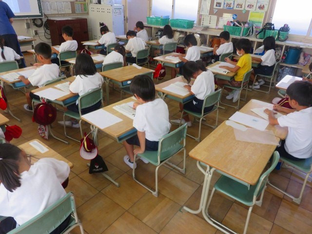 1・2時間目に書写競技会を行いました。集中して取り組み、字の形や大きさに気をつけながら、これまで練習してきた文章を丁寧に書き写しました。