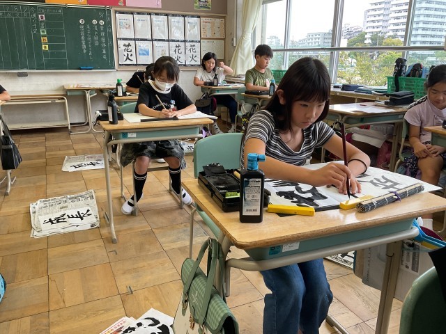 5年生は、今日は書写競技会でした。今まで練習してきた「成長」という字を筆順と字形に気をつけながら書き上げました。