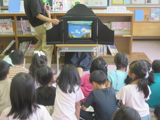 今日の読み聞かせは「おばけのてんぷら」「へんてこやまのうんどうかい」紙芝居「三びきのやぎ」でした。
