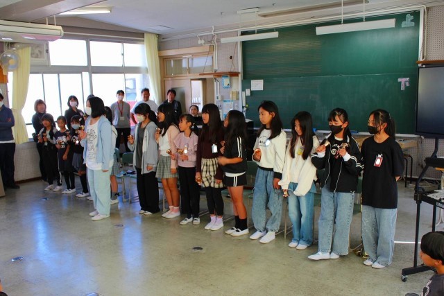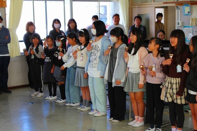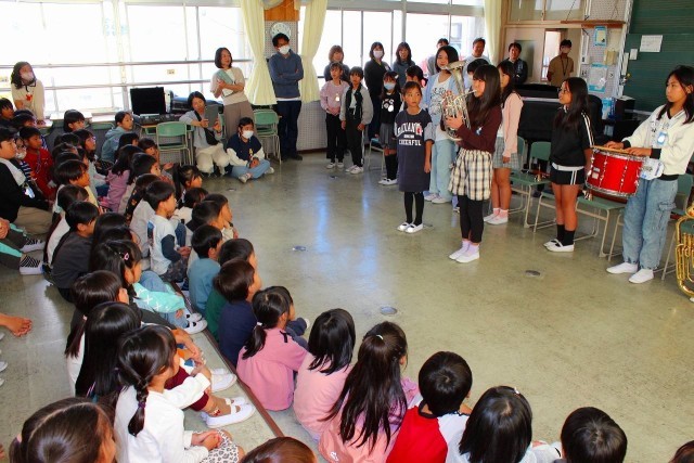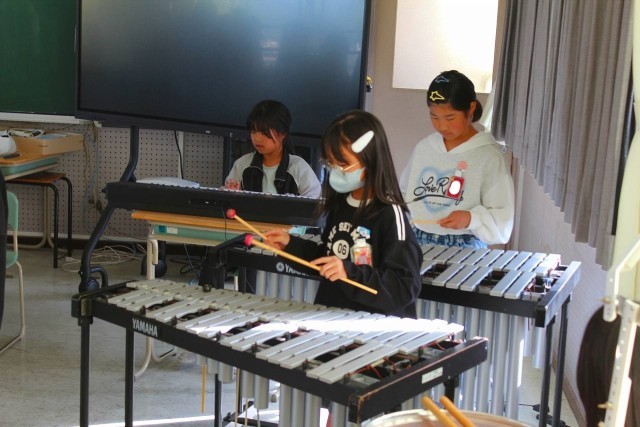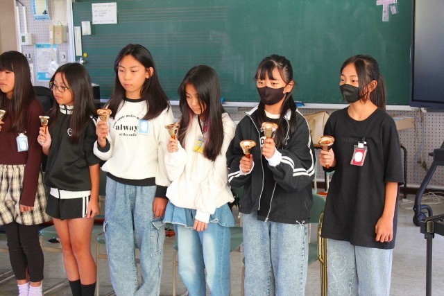 20分放課にアンサンブル部が校内発表会を開催しました。ハンドベルや鉄琴、キーボード、ピアノ、アルトホルン、リコーダーなどの楽器を使って「もみじ」「となりのトトロ」を演奏し、楽器紹介をしました。練習の成果が存分に発揮され、音楽室に入りきれないほどのたくさんの観客は、すてきな演奏に心も時間も奪われる心地の良いひとときを過ごしました。