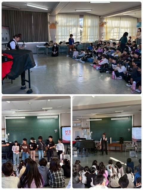 11日に行った放課後総合プランは、M'sカンパニーの方に来ていただきました。みんなで勇気100%やさんぽを歌ったりしました。ハンドベルの演奏にも参加させてもらい楽しい時間を過ごすことができました。