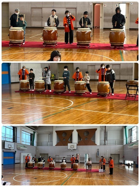 ていねいにたたき方やリズムの取り方を教えていただき、太鼓のいい音が体育館に響き渡りました。