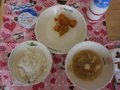 【献立】ごはん 牛乳 中華豆腐スープ