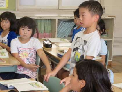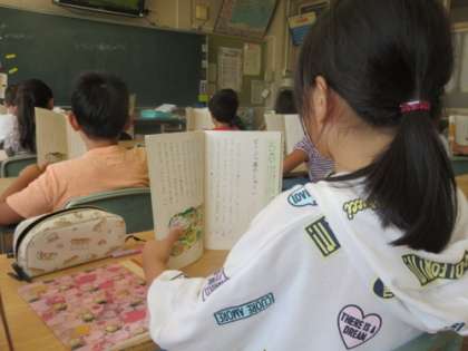 「どうぶつ園のじゅうい」というお話を勉強します。1組は今日からスタート、「じゅういさんで知ってる?」という先生の問いかけに、男の子が説明してくれました。「これは動物園の中で仕事をしているじゅういさんのお話ですよ」と、先生が付け加えてくれました。初めて出会うこのお話、初めは範読のCDを聴いて内容を確かめました。