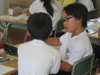 でも、いつも絵をかいて計算するわけにはいきません。この計算はどのようにすれば良いのでしょう。ヒントは九九にありそうな・・・。みんなで一生懸命考えました。