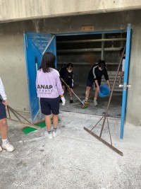 次はフライパンに油を入れて炒めます。かたいにんじんから入れていきます。火加減や炒める時間が分からず、いつの間にか焦げているグループもありました。子どもには人気のないピーマンなどの野菜ですが、自分たちで作ったものはきっとおいしかったにちがいありません。