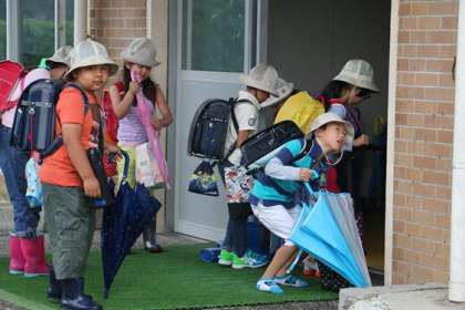 雨の日の朝は昇降口も混み合います。ゆずり合って順番を守るしのっ子はさすがです。