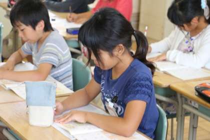 4年生の書き方の時間、今日は硬筆です。教室に入ったときから、このクラスの姿勢の良さを感じました。先生が文字を見るとともに、しのっ子の姿勢にも声をかけていました。書き方の時間は姿勢を見直すよい機会となっているようです。