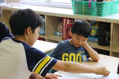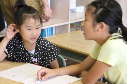こちらは1年生と6年生の組み合わせです。身長差もご覧の通りの組み合わせです。