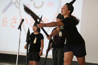 保健委員会のしのっ子がバイキンマンのテーマで登場し、6歳臼歯にかかわるクイズを出しました。保健委員会は今日の集会に向け、長い間練習を重ねてきました。練習の成果があってすばらしい集会なりました。