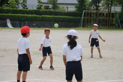 今の体育のカリキュラムでは「ベースボール型ゲーム」という単元があります。4年生はハンドベースボールを行いました。