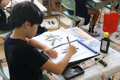 4年生は明日が書写競技会です。限られた時間を集中して練習に励んでいました。