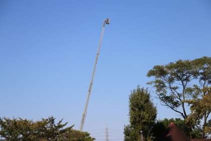 篠岡小ならではの光景です。消防署の方の訓練中。青空めがけ、はしご車が上っていきます。