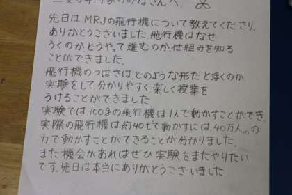 昨日航空機講座でお世話になった三菱重工の方に、お礼のメッセージをかきました。手紙を書く子やイラストを描く子など、表現の方法は自由です。みんなが思い思いに感謝の気持ちを表しました。