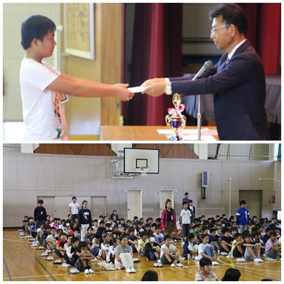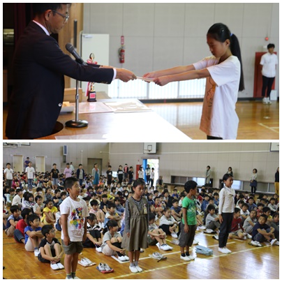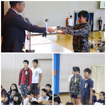 担当の先生から名前を呼ばれた児童は、返事をして起立しました。それぞれの役職で、代表者が認証状を受け取りました。
