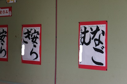 小野小学校席上揮毫大会が、来週末に迫ってきました。代表のしのっ子が練習してきた作品が、職員室前に掲示してあります。さすがにうまい!