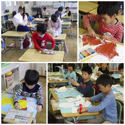 初めての図工競技会です。「やぶいたかたちから うまれたよ」です。