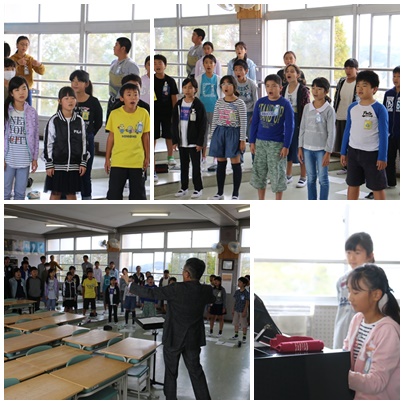 始めにもう一度楽譜をよく見て、気をつけるところを確認しました。去年までも音楽の時間に教えていただいていましたが、久しぶりのご指導にしのっ子の歌声も一味違ってきました。