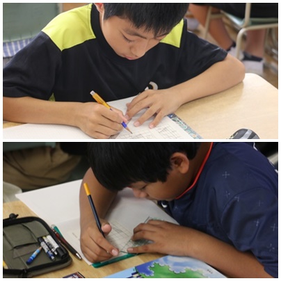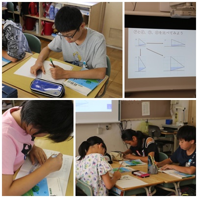 6年生算数の内容は「図形の拡大と縮小」です。正確な図になるよう、定規を手に奮闘中。