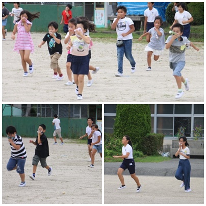 身を低くする、ガラスから離れる、机の下に入るなど、自分の判断でいる場所に応じた身を守る行動をしなければなりません。事前に指導はしてありますが、いつ訓練を開始するかの予告はしていないので、放送を聴いてもすぐに行動に移れなかったしのっ子もいたようです。