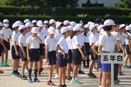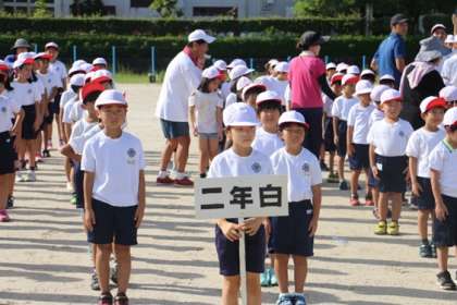台風の影響もあり、初日の今日は朝から暑くなってしまいした。開会式への入場と退場の練習にしぼり、短時間で終了しました。