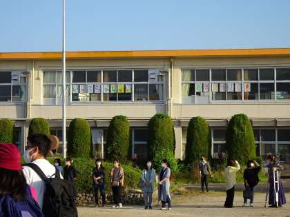 多くの保護者の方、教職員、そして5年生も窓からメッセージでお見送りです。