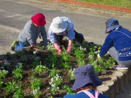 子どもたちは、手早く植えていく地域・保護者の方に、教えてもらいながら、植えることができました。