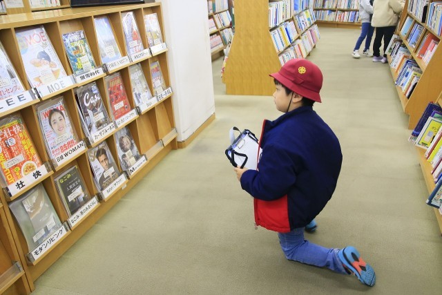 次に、地下にある図書館に行き、貸出体験をしたり、利用する人が気持ちよく利用できるような工夫を見つけたりしました。