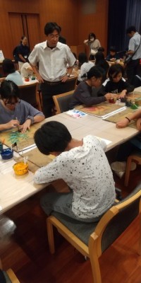 それぞれのデザインを、5つの型に分けて着色していきます。みんな真剣です。