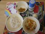〜献立〜 わかめごはん 牛乳 かきたま汁 あじフリッター 野菜ゼリー 大人気...