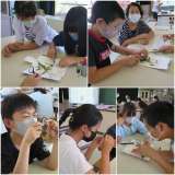 5年生の図工。用途を考えて、楽しく使える焼き物を作ります。牛乳パックを土台にし...