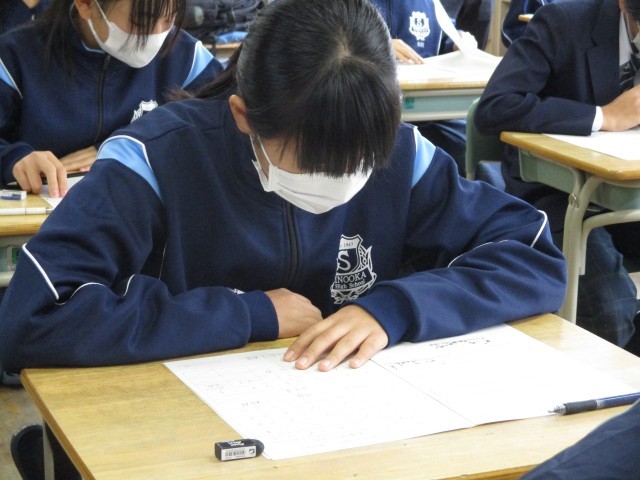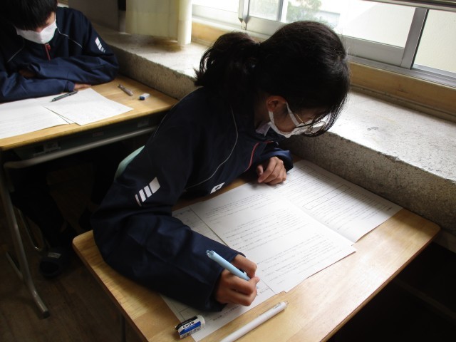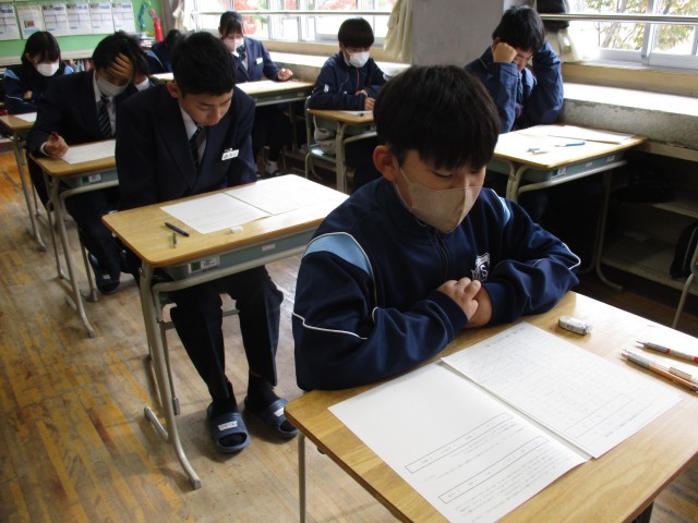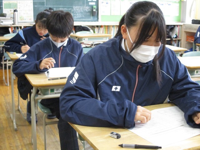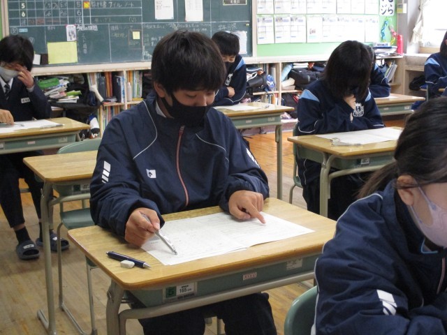 3時間目に保健体育の確認テストを行いました。2学期の期末テスト週間ということもあり、みんな真剣にテストに臨むことができました。この調子で週末も家庭での学習もがんばりましょう!