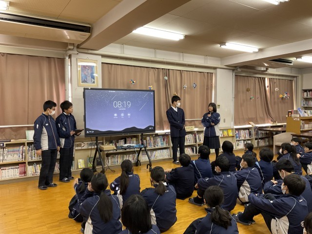 生徒会執行部の生徒の公約のあいさつに関わる活動が学校全体で始まります。それに合わせて、1年生みんなでで活発に取り組むために、議員から劇やポスターの発表がありました。元気なあいさつから1日を始めよう!!