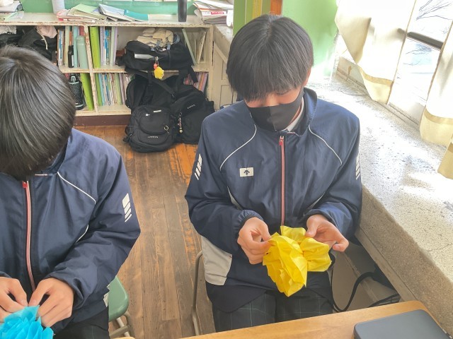今までお世話になった3年生へ、心を込めて作っていました。