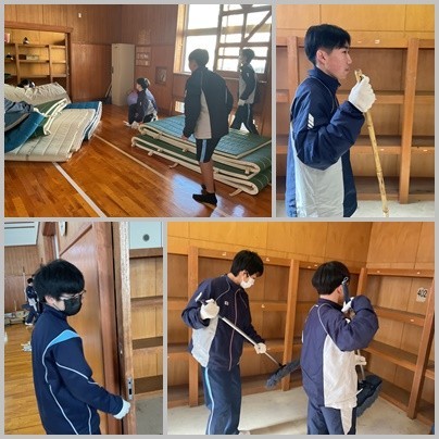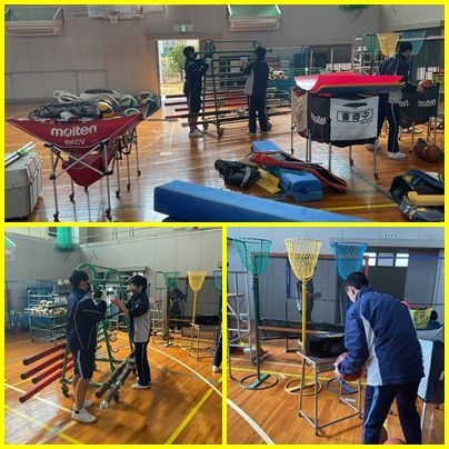 体育館器具庫と武道場器具庫の掃除を行いました。