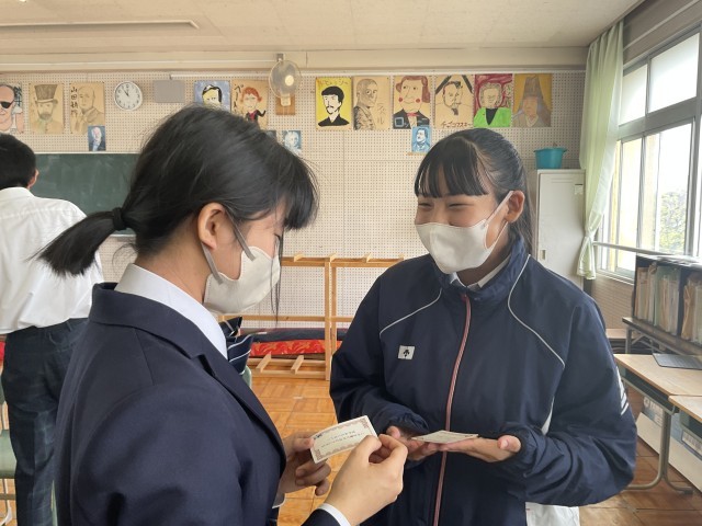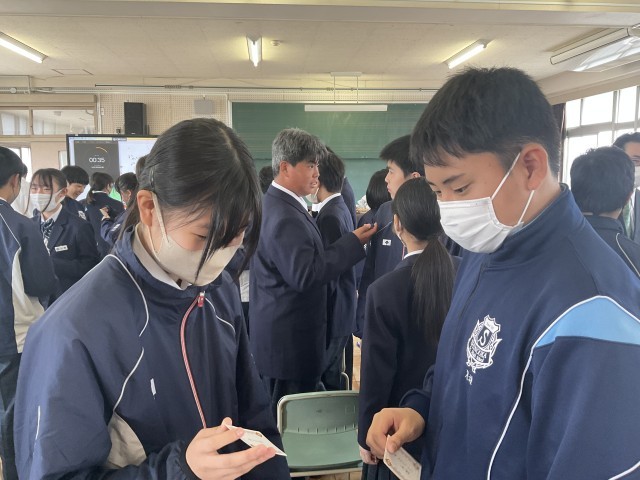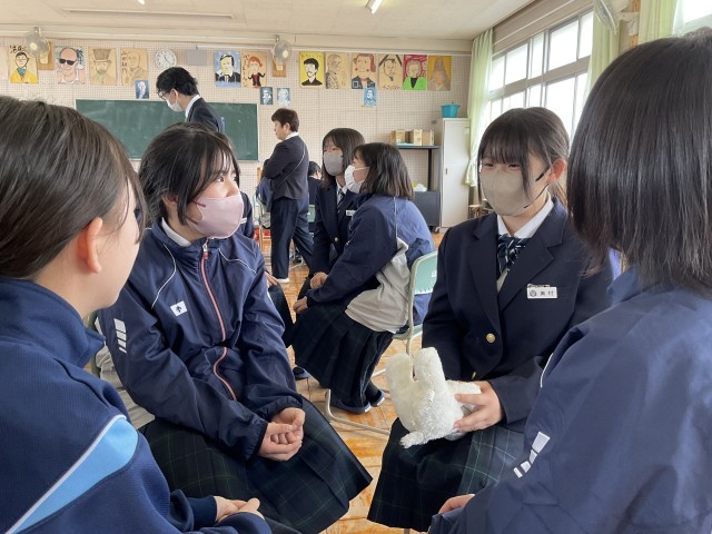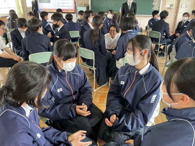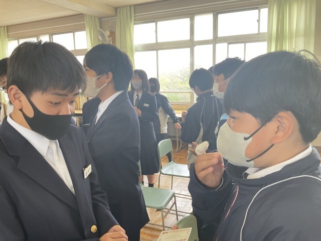 昨年度と同様に深見先生に来ていただいて、クラス会議のやり方を教えていただきました。ハッピーサンキューナイスを発信していく経験をしました。小さなことに感謝することは大切ですね。仲間の悩みにも寄り添いました。みんなとだから解決できる、そんな経験でした。今後の生活にいかしていきましょう。