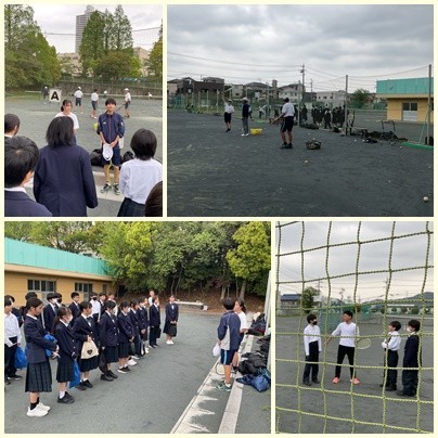 ソフトテニス部では、ストロークやボレーなどの練習風景を見学しました。