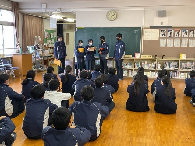 図書、保健美化、給食委員会からの提案があり、活発な意見交換が行われていました。