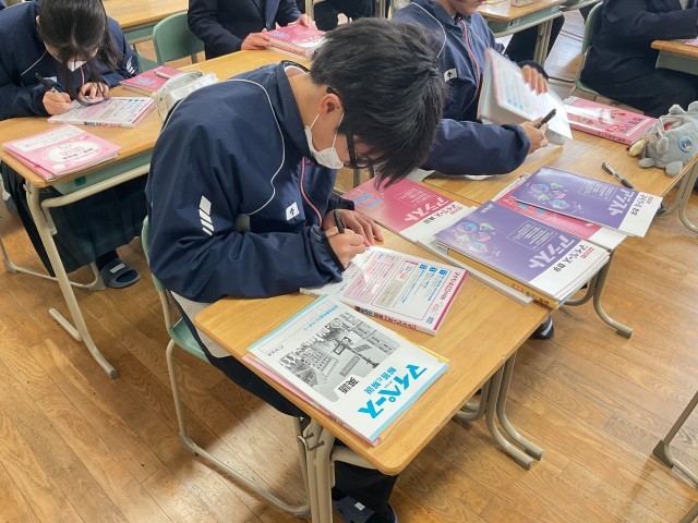 その時に持参する自己紹介カードや生き方調べを行いました。