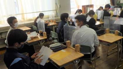 電話をかける練習では、緊張しながらも本番をイメージしながら一生懸命受け答えをする姿があり、生徒たちのやる気が伝わってきました。